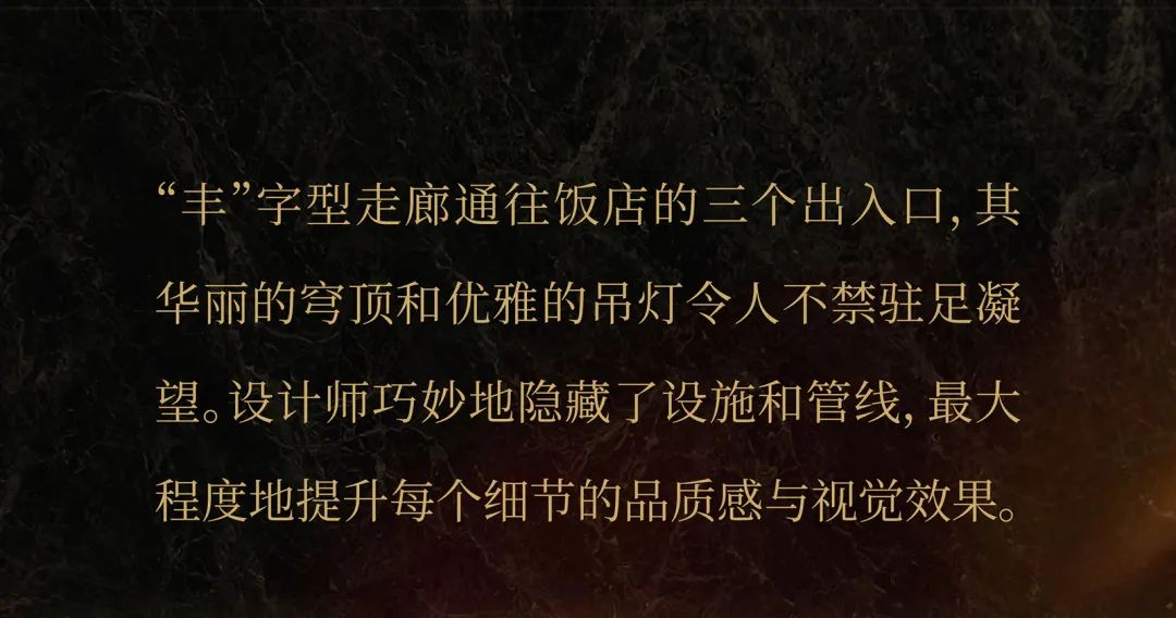 The "Chinese character Feng-shaped" corridor leads to the three entrances/exits of the hotel,